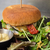 Bun maison, steak haché de boeuf breton, mozzarella de bufflonne, jambon fumé affiné, tomates confites, gorgonzola, salade, mayonnaise, pesto vert