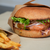 Bun maison, steak haché de boeuf breton, mozzarella de bufflonne, Jambon fumé affiné, tomates confites, gorgonzola, salade, mayonnaise, pesto vert